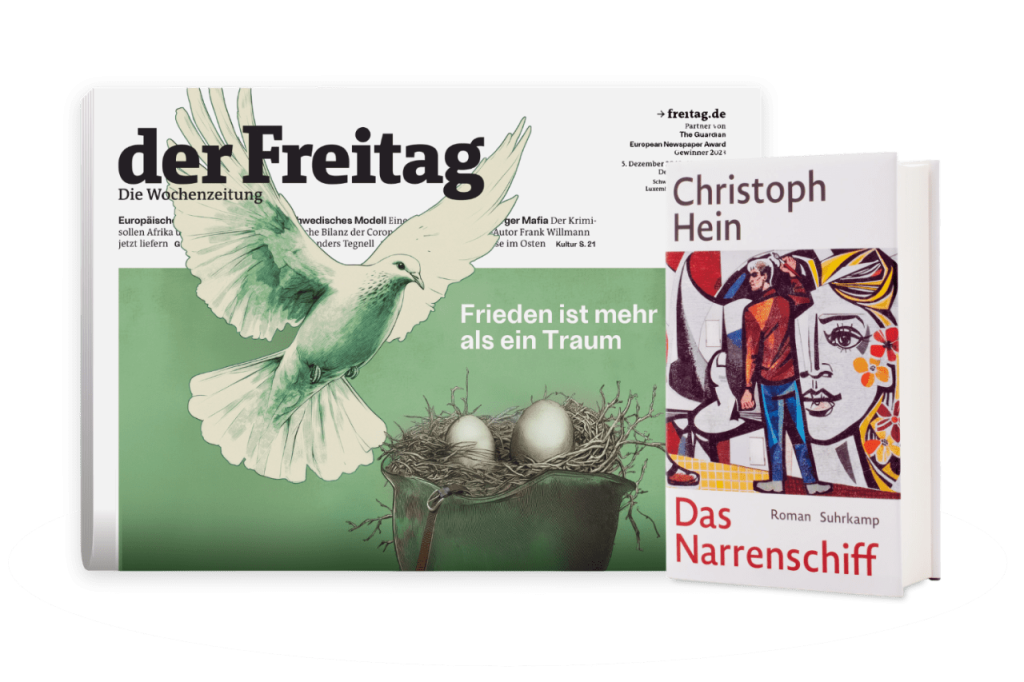 Verschenken Sie 2 Monate den Freitag – kluge Argumente für die Beschenkten, Christoph Heins „Das Narrenschiff" für Sie.