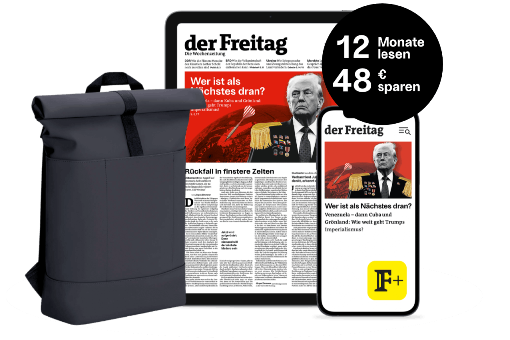 Gute Argumente sind der beste Begleiter in stürmischen Zeiten. Sichern Sie sich 12 Monate den Freitag digital zum Vorteilspreis – und wir schenken Ihnen den exklusiven Rucksack von Ucon Acrobatics als Prämie dazu.