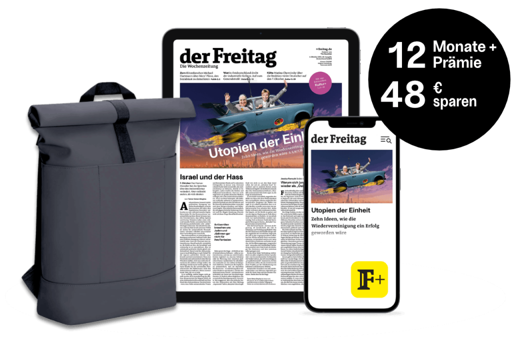 Gute Argumente sind der beste Begleiter in stürmischen Zeiten. Sichern Sie sich 12 Monate den Freitag digital zum Vorteilspreis – und wir schenken Ihnen den exklusiven Rucksack von Ucon Acrobatics als Prämie dazu.