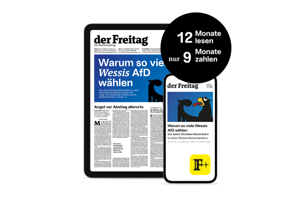 Ein Jahr lang progressive Positionen, kluge Stimmen und die Lust am konstruktiven Streit. Mit dem Freitag digital begleiten wir Sie durch die Debatten der kommenden 12 Monate – hintergründig, nachdenklich und immer konkret: