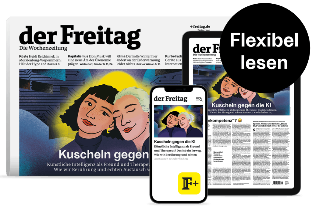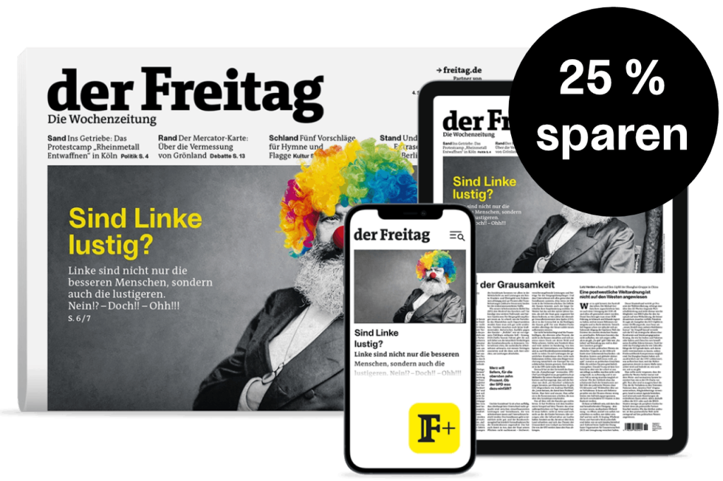 Lesen Sie den Freitag zwei Monate lang im Kombi-Abo – und entdecken Sie die klügsten Stimmen auf allen Kanälen: